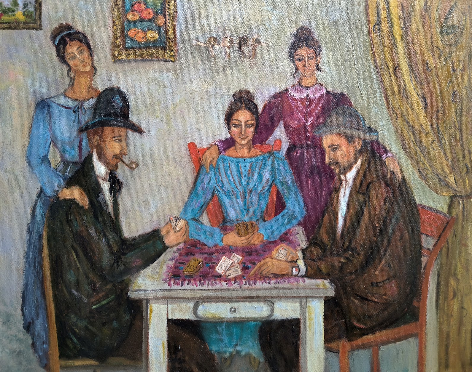 40×50, olej, zdjęcie nie oddaje uroku pracy. Praca z otwartego cyklu Dialog z Mistrzami.
