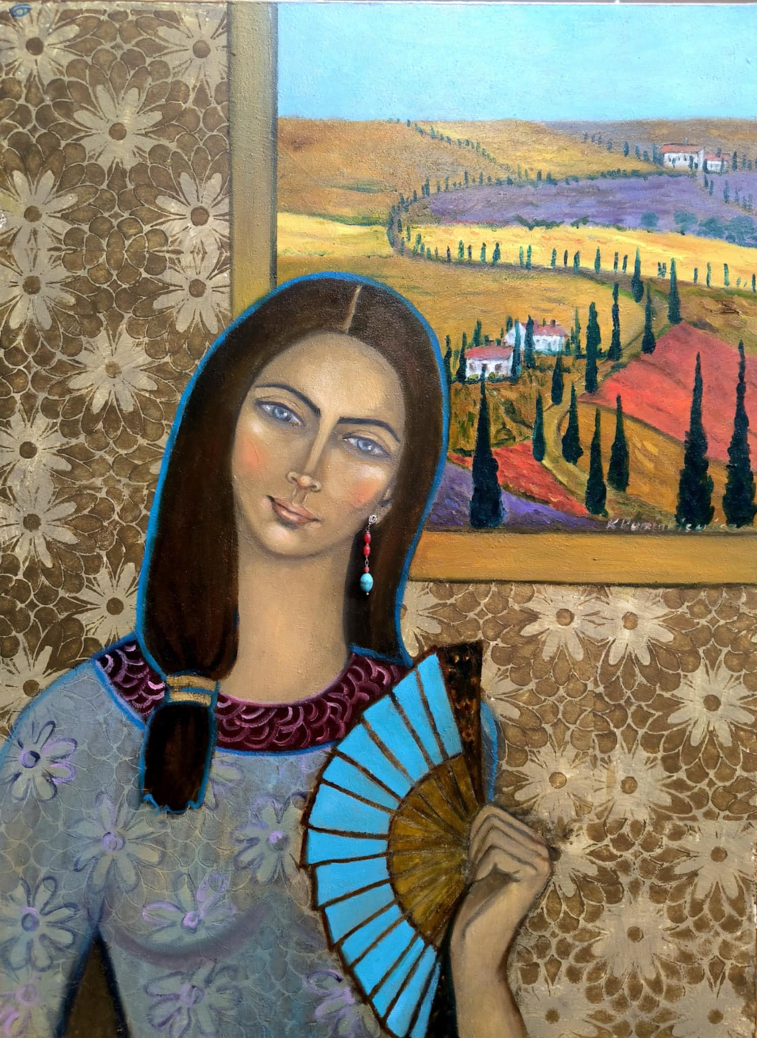 80×60, olej. Dołączony srebrny kolczyk z kamieni. Zdjęcie nie oddaje walorów pracy.